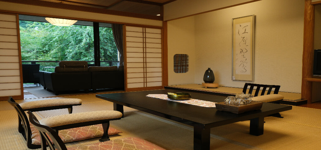 The 8 rooms facing the garden and furnished with the open air bath are Ginyu no ma which is protected by the dragon known as "Water God".